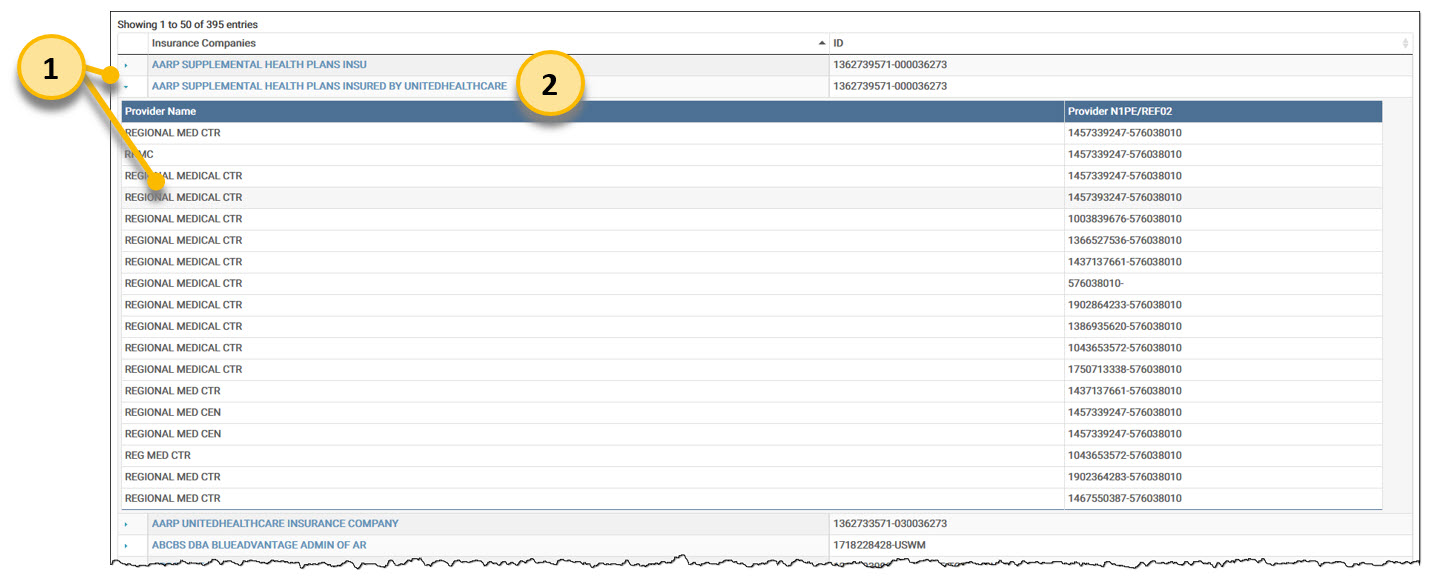 Click the arrow to drill-down to view provider details and click the down arrow to hide it.