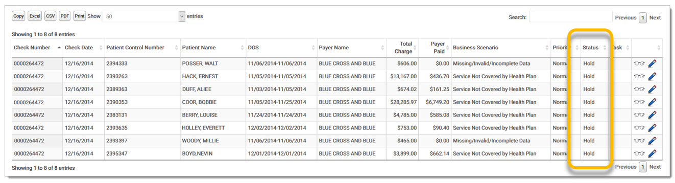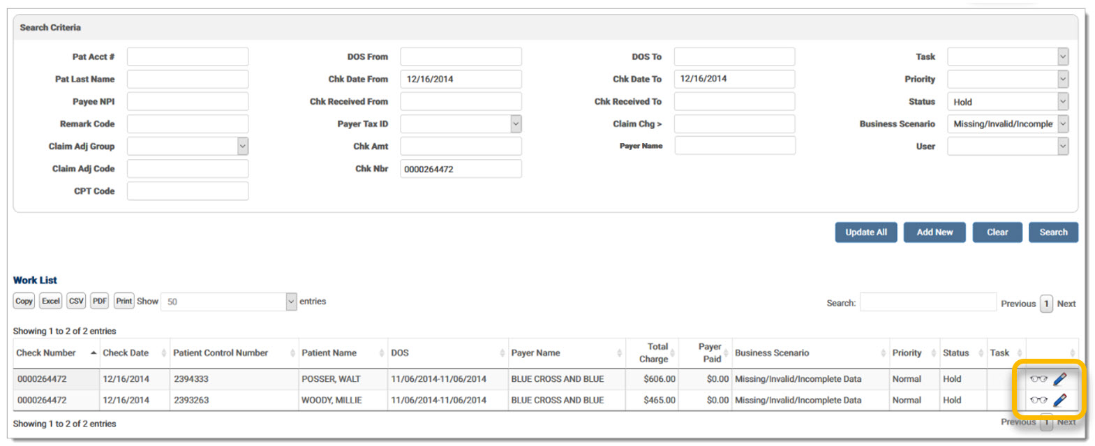 Complete a search with the updated criteria to view the remits in the Work List. Click the pencil icon.
