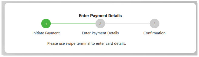 Swipe Terminal: Select Wired or Wireless for the swipe terminal. A screen displays prompting the use of the terminal to complete the sale. The corresponding terminal also prompts for input. Site must be set up for swipe terminals to use this option.